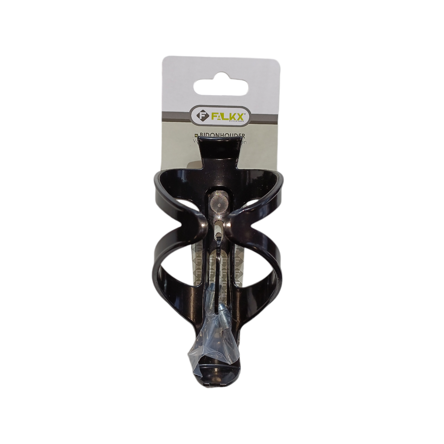 FALKX Ron Flex Bidonhouder • Deze bidonhouder is zeer flexible en kan diverse formaten bidons en flessen aan, van 0.33l tot 1.5L. • zwart