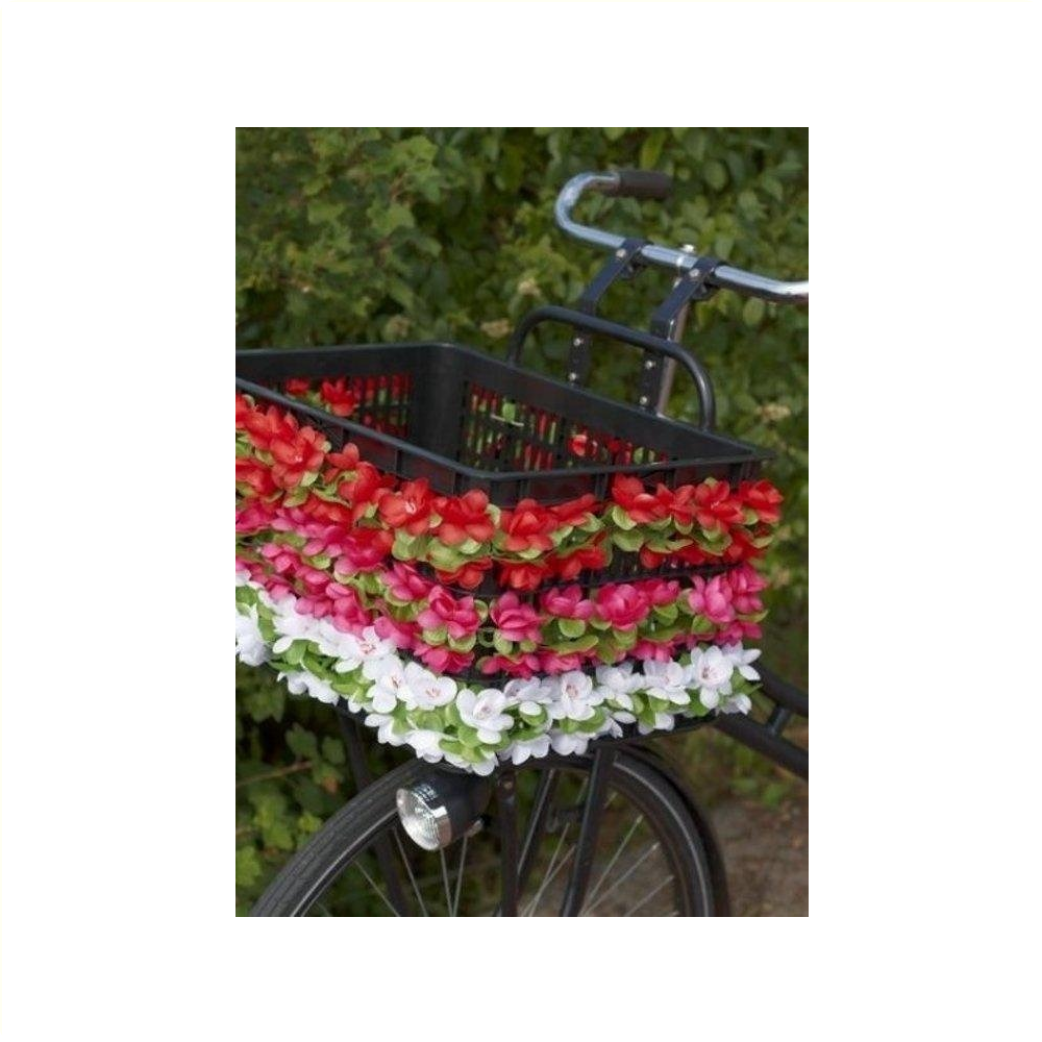 De Basil bloemenstreng is een kleurrijke bloemenslinger voor het opvrolijken van een fietsmand, stuur of frame van een unisex fiets. De fietsslinger is verkrijgbaar in een fuchsia kleur. Deze bloemenstreng heeft een lengte van ongeveer 120 cm en maak je eenvoudig met tyraps vast aan de fiets