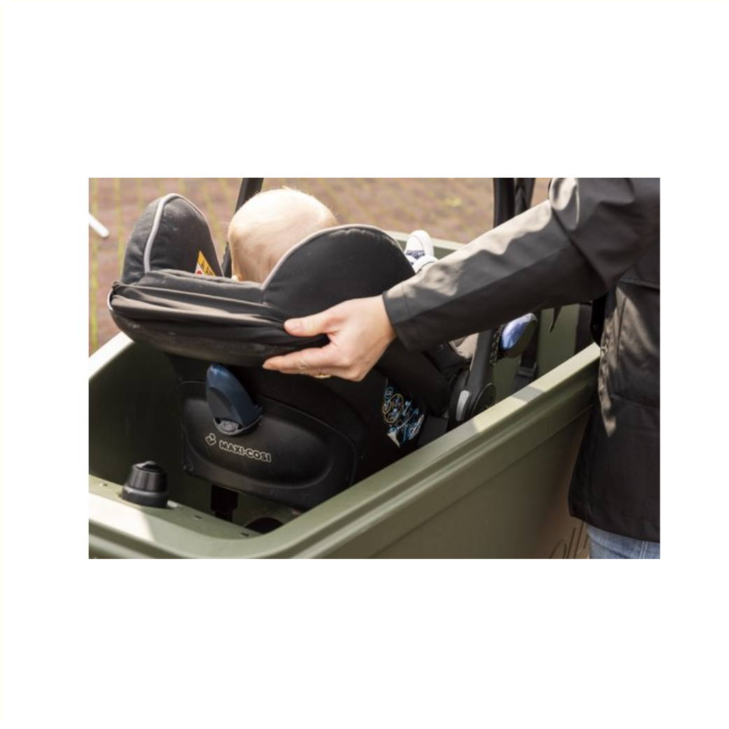 Met de Steco Mini Mee klik je gemakkelijk de baby autostoel in de bakfiets, de manier om veilig jouw baby te vervoeren. Door de verende werking van de drager heeft deze een goed dempende werking voor je baby.
