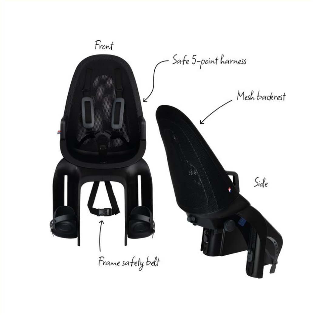 Belangrijkste kenmerken van Qibbel Air achterzitje, zwart. dragerbevestiging