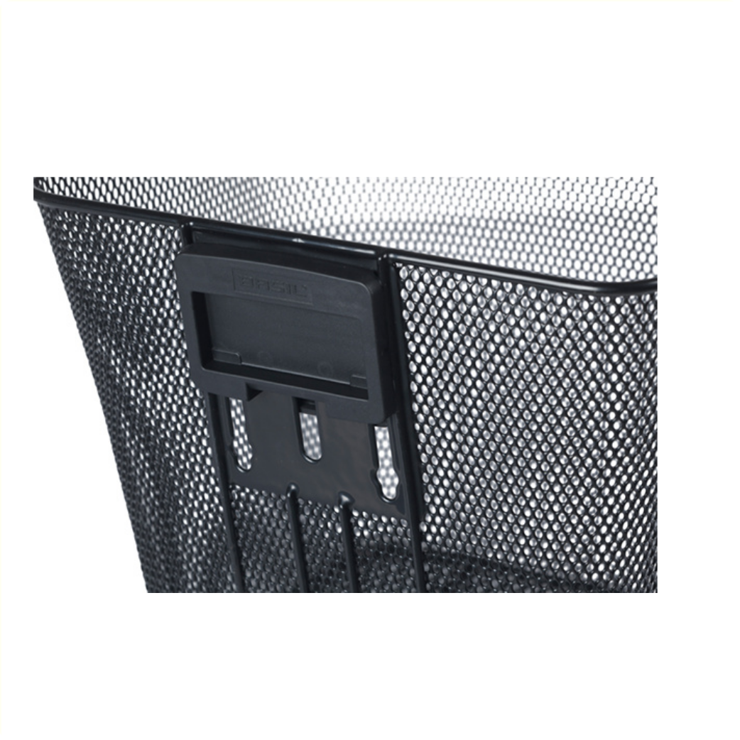 Staal, fijnmazig, afneembaar, inclusief voorgemonteerde KF plaat (70158), past op Basil KF handlebar holder (70177) en stemholder (70189) (apart verkrijgbaar), hengsel met kunststof grip,mand in hoogte verstelbaar d.m.v. sleuven