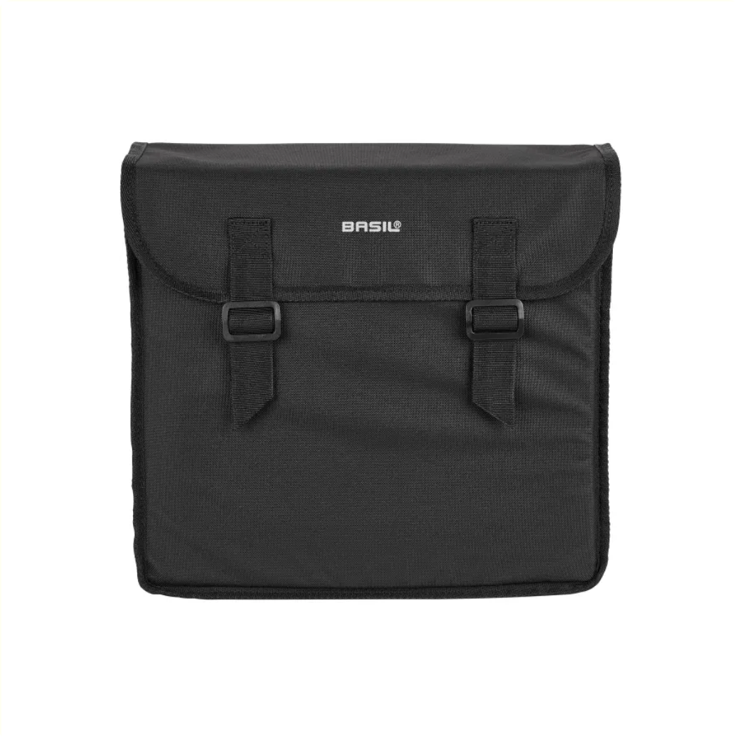 De Basil Mara is een dubbele fietstas in een zwarte uitvoering. Deze stijlvolle fietstas is geschikt bevestiging aan de bagagedrager van een dames- of herenfiets.