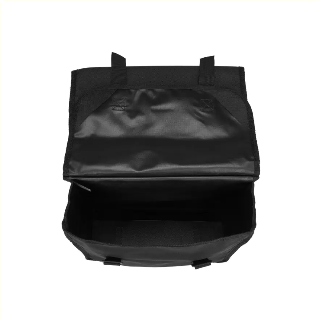Een dubbele fietstas met inhoud van 26 liter, ideaal dus voor boodschappen of andere benodigdheden uit de winkel.