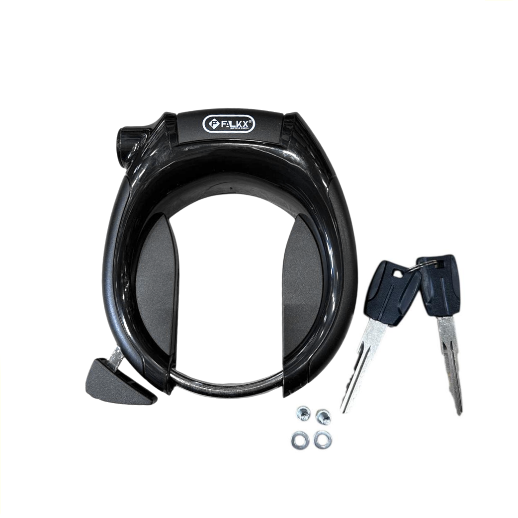 Het klassieke ringslot van Falkx voor de alledaagse fiets. • Vanwege het geharde staal is dit robuuste fietsslot extra sterk. • Inclusief 2 sleutels.