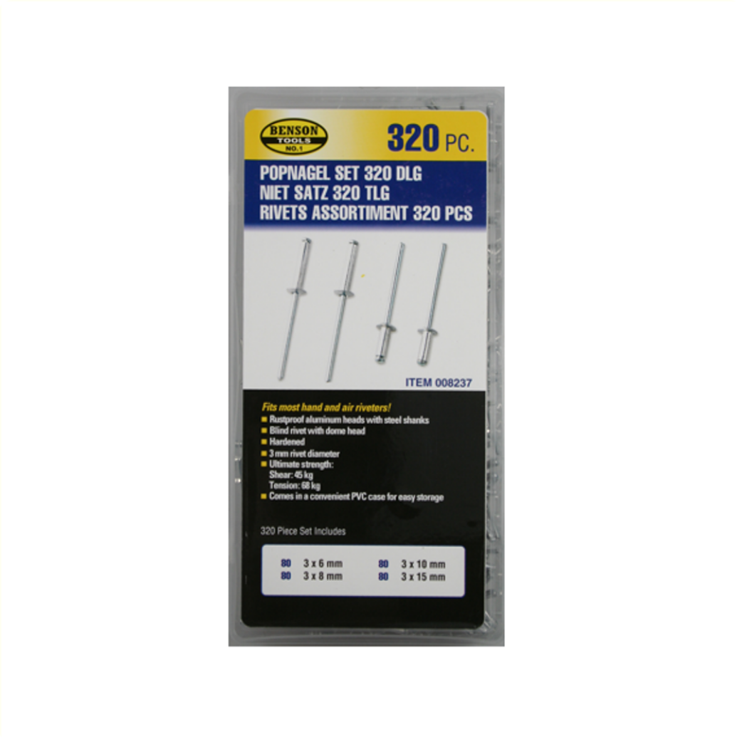 Bestaande uit • 80x: 3x6mm • 80x 3x8mm • 80x 3x10mm • 80x 3x15mm