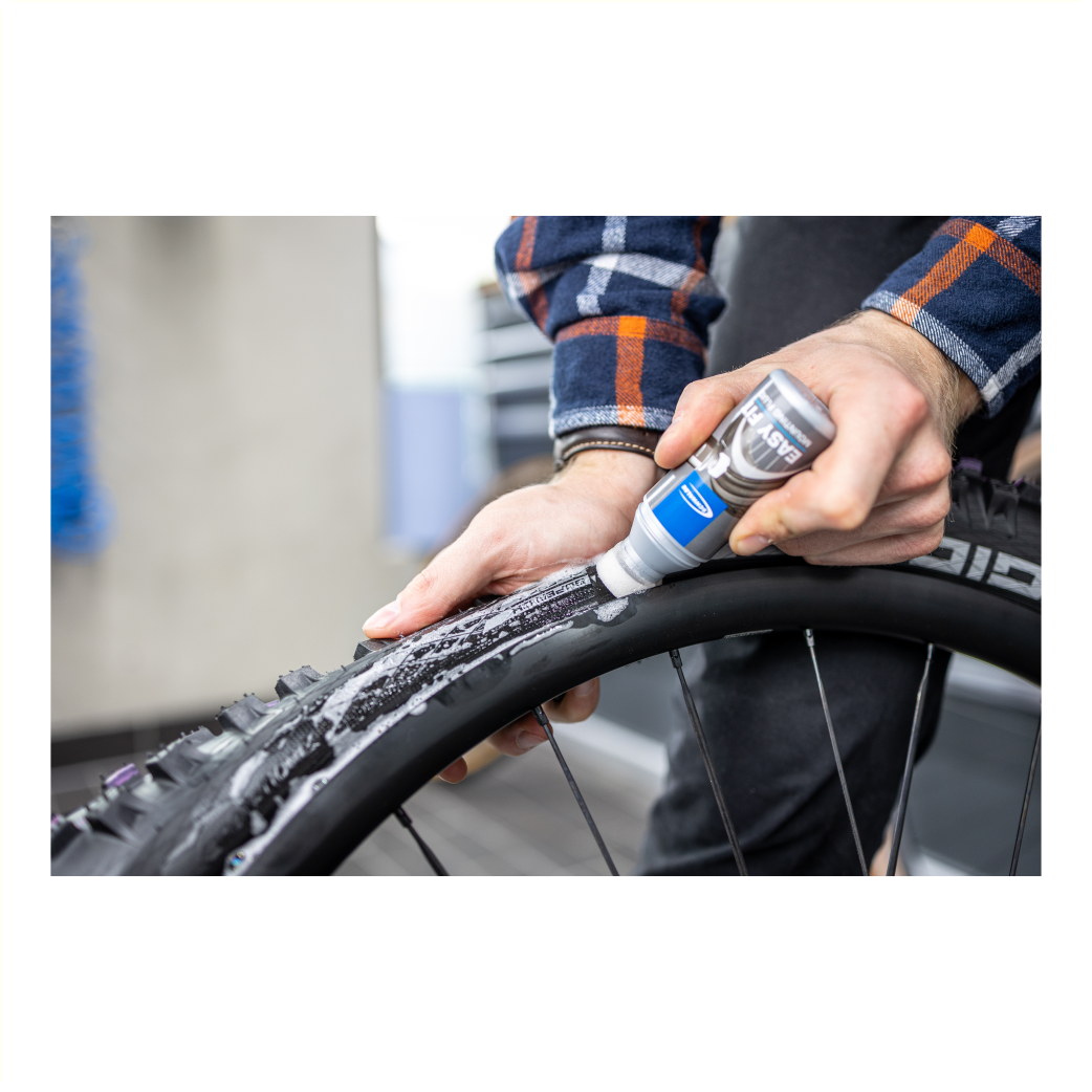 • Het flesje is voorzien van een handig sponsje welke je gemakkelijk zonder je handen vuil te maken kunt aanbrengen op de hiel van de band.