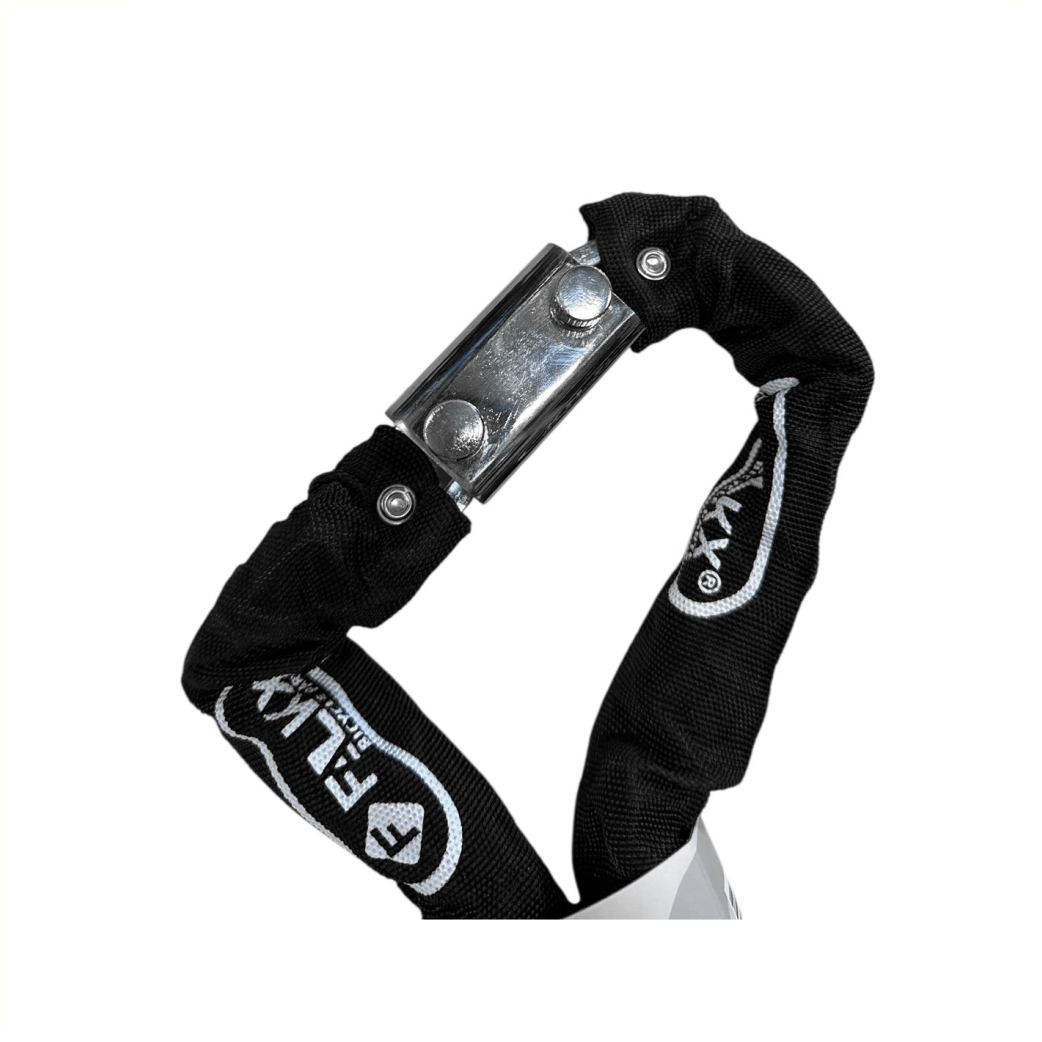 Duurzame textielhoes: De ketting is omhuld door een sterke, zwarte nylon hoes. Deze beschermt je fietsframe tegen krassen en zorgt ervoor dat de ketting beschermd blijft tegen weer en wind.
