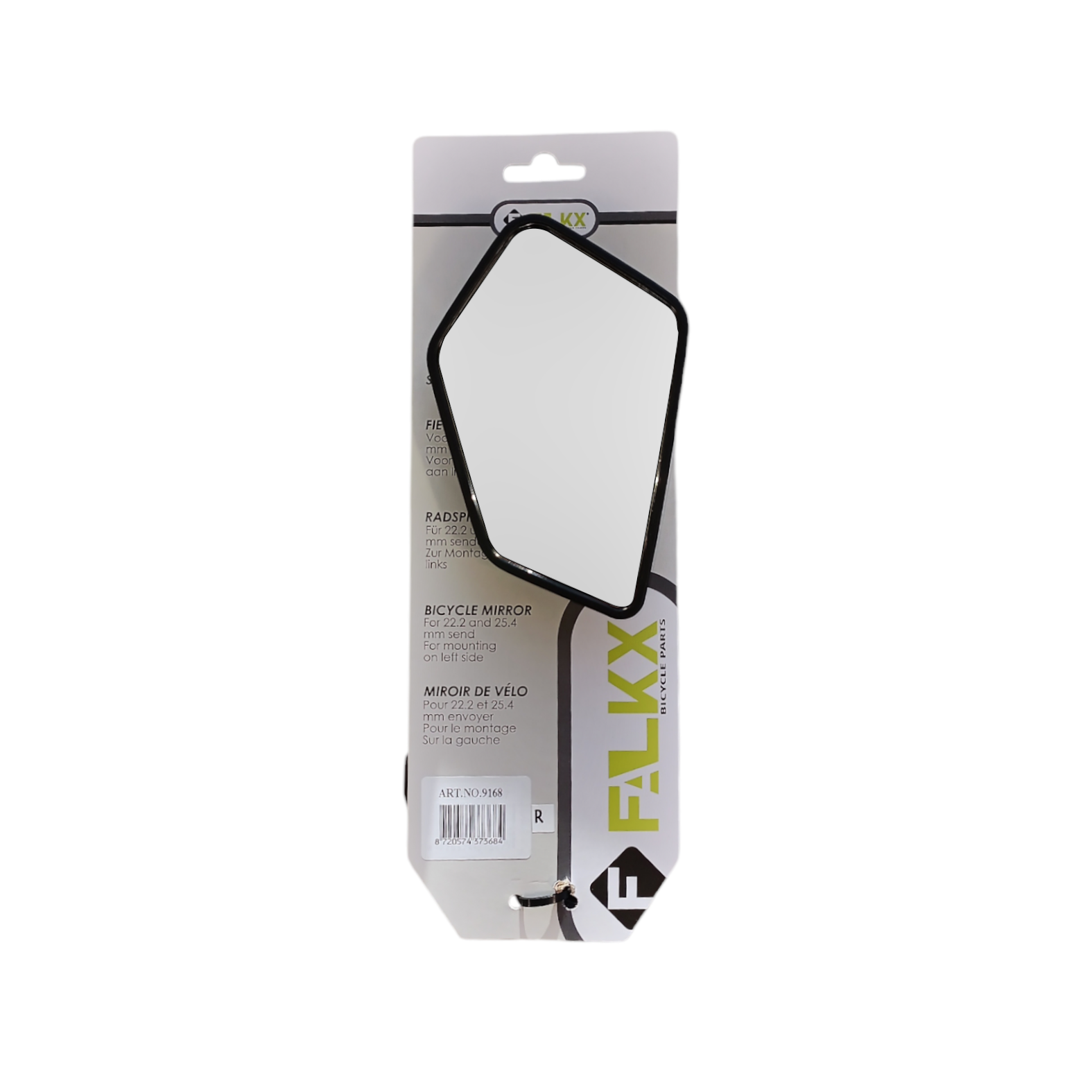 FALKX Spectre R Fietsspiegel • Montage rechterzijde • afm acryl glas 14x8.5cm • 22.2/25.4 mm diameter fietssturen • Lengte arm 21cm