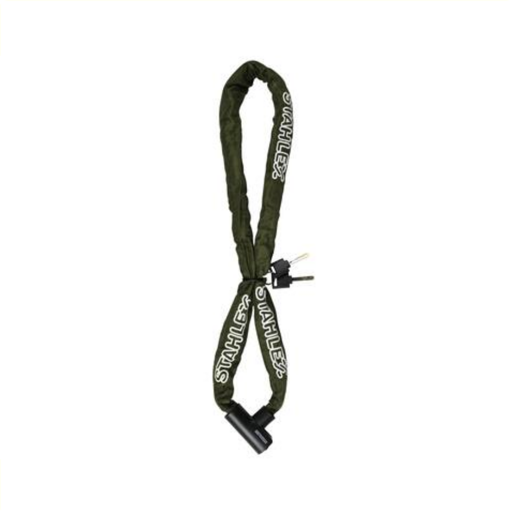 • Ketting van hoogwaardig gehard staal • Met stevige PP hoes • Inclusief veiligheidssleutels