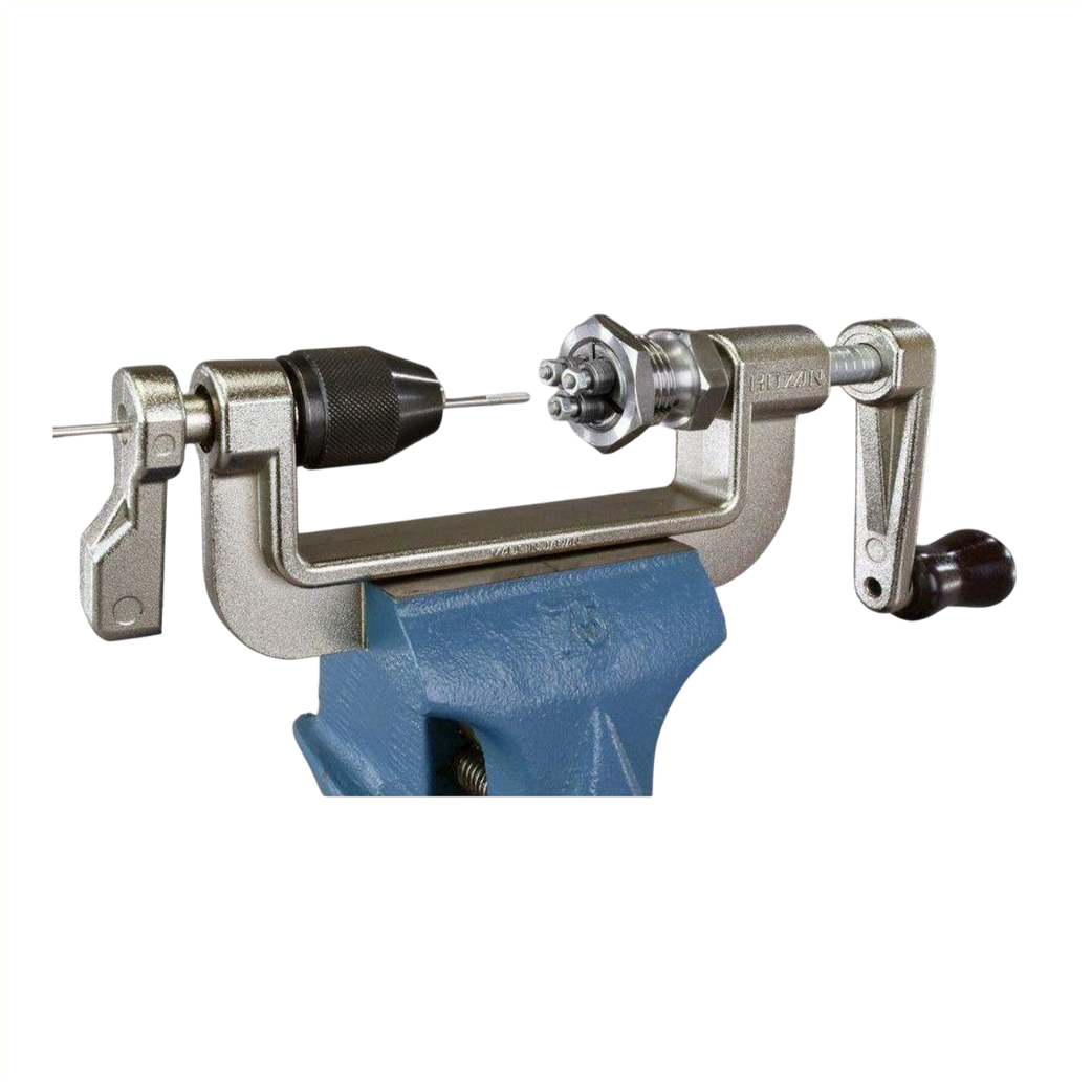 • Als de draadsnijkop eenmaal vat heeft op de spaak hoeft er alleen maar aan de hendel gedraaid te worden om een perfect gesneden draad op de spaak te krijgen.