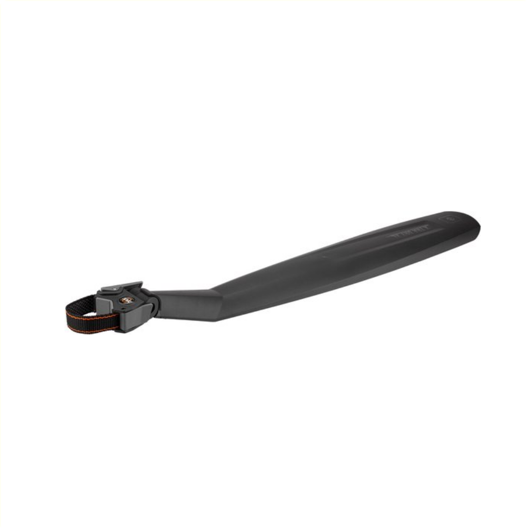 • Het mountainbikespatbord van zwarte, slagvaste, hoogwaardige kunststof kan dankzij de Quick Release-bevestiging zonder gereedschap aan de zadelpen worden bevestigd.