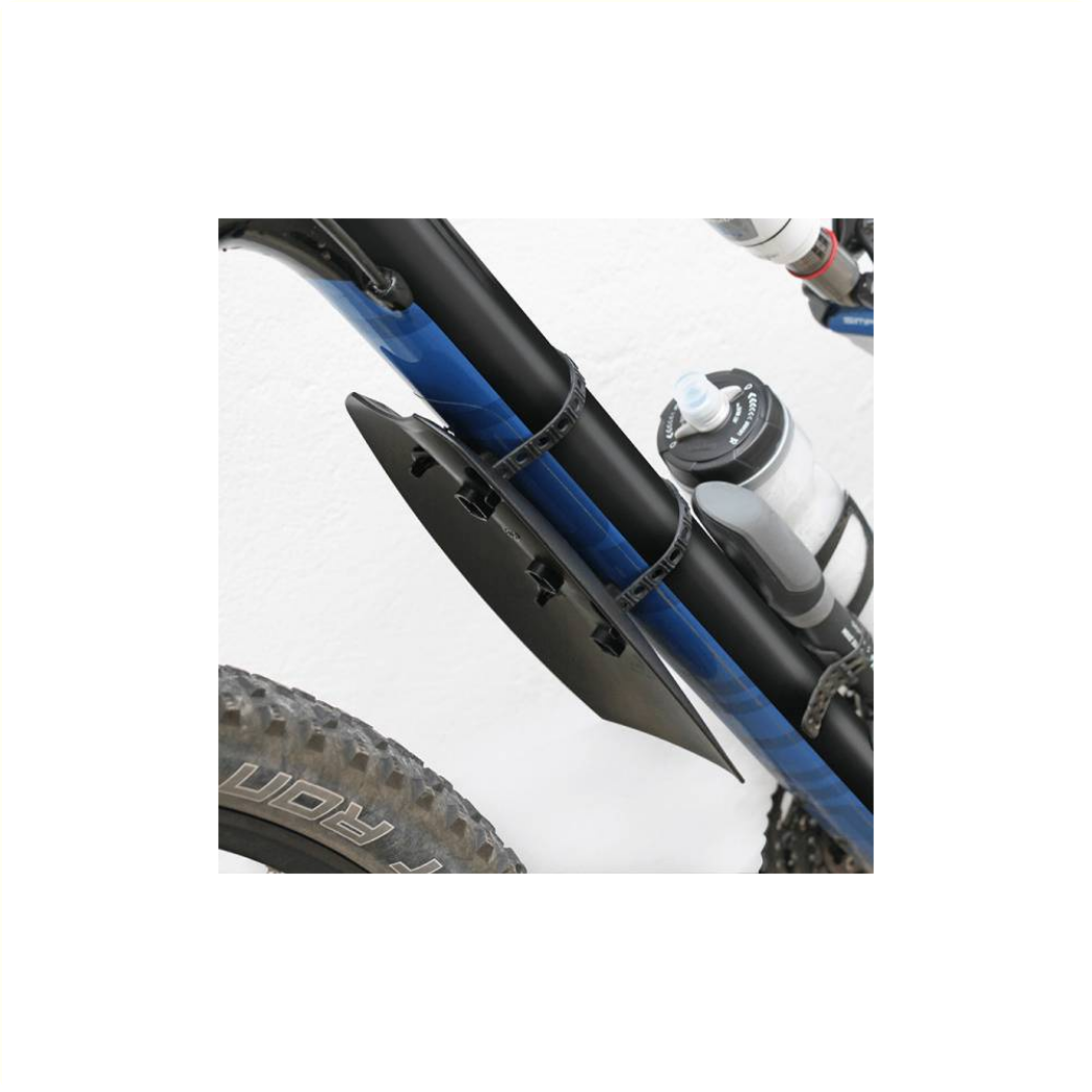• Zelfs dikke frames zijn geen probleem. De elastische banden worden eenvoudigweg over de onderbuis geschoven en aan het dirtboard vastgemaakt.