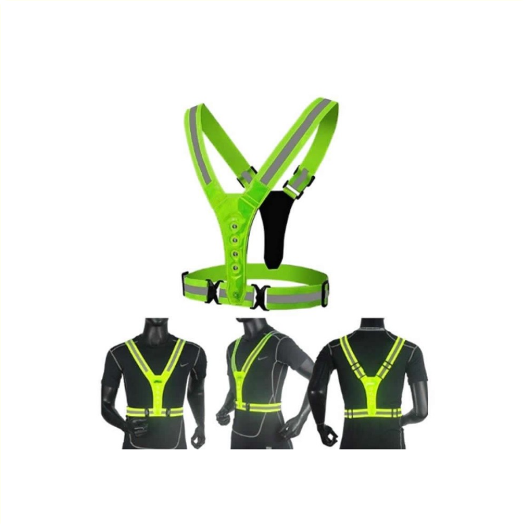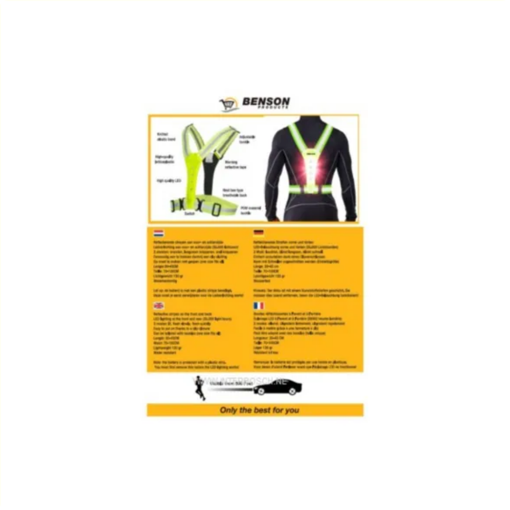 waterbestendig • One size fits all • 3 instelbare standen verlichting • 4 witte ledlampen voor • 4 rode ledlampen achter • Reflectie aan voor-en achterzijde • incl batterijen