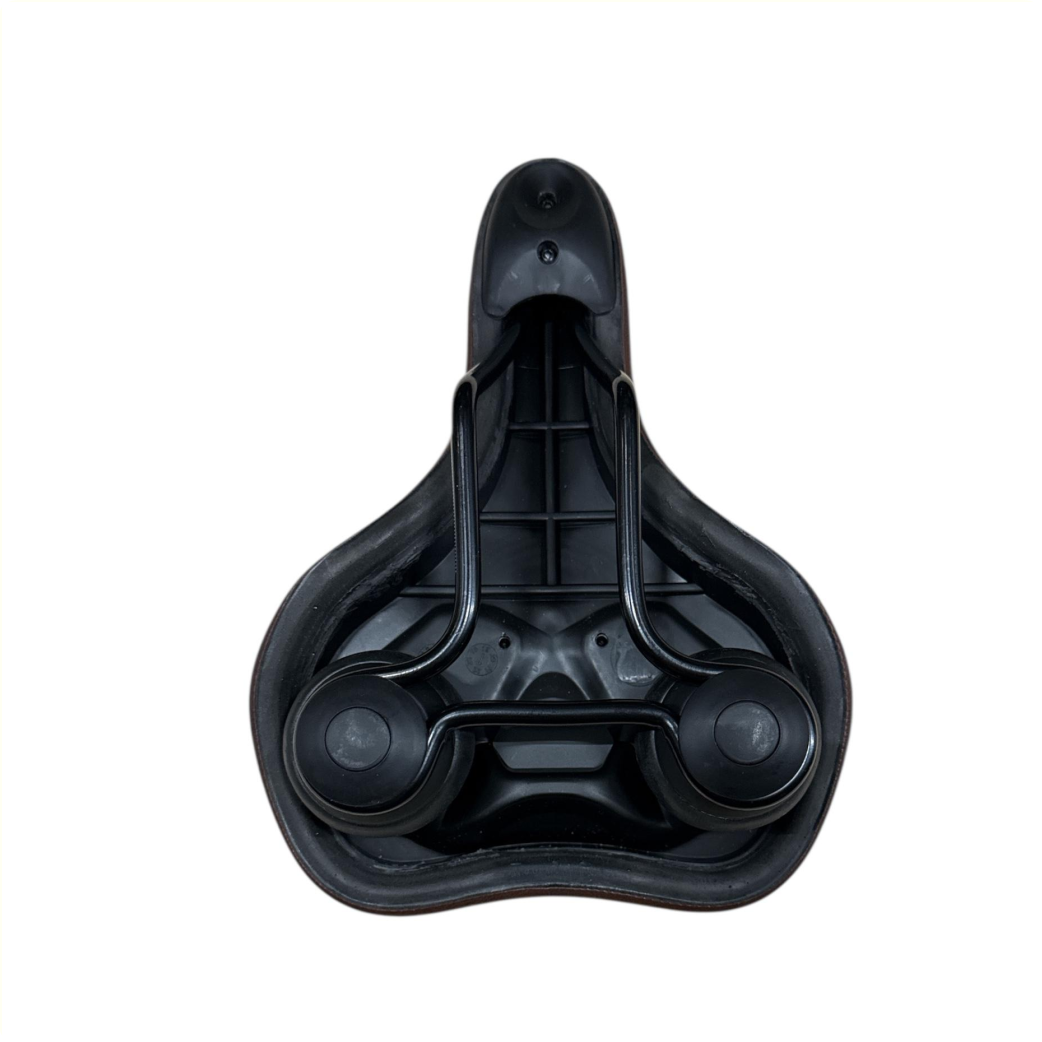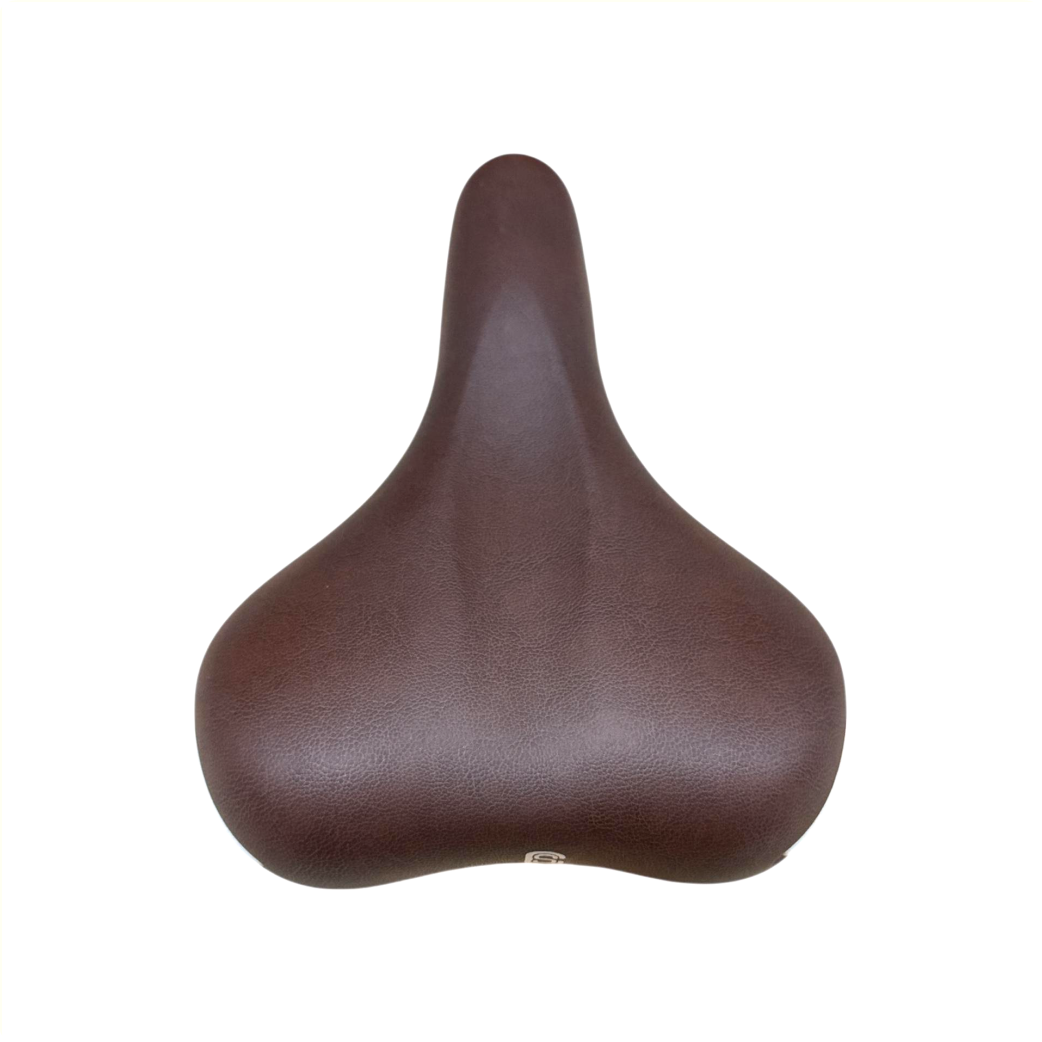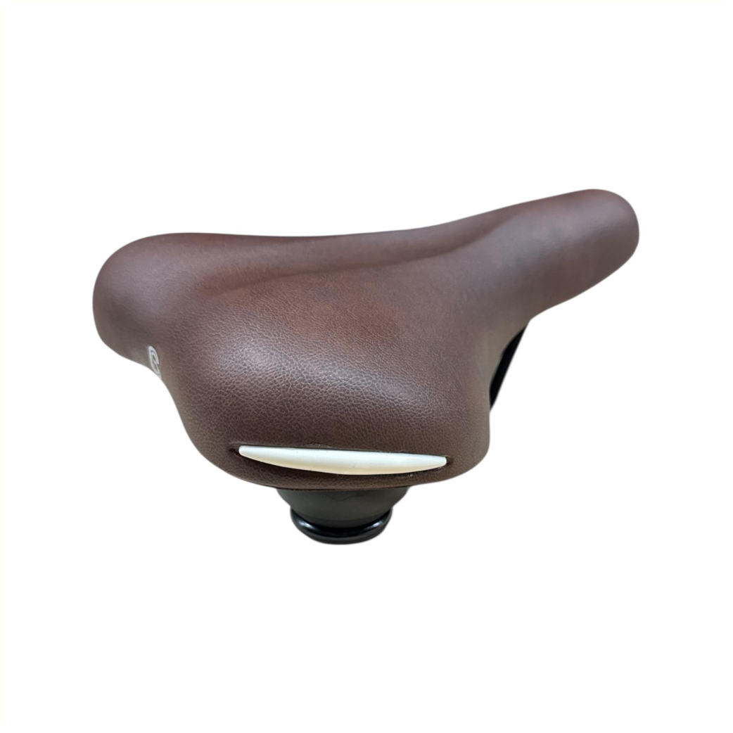 Belangrijkste kenmerken van Selle Comfort zadel Ride. Bruin met witte bumpers, zonder strop