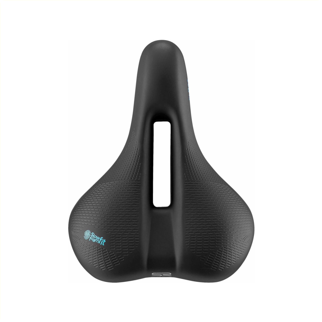 De Selle Royal Float Moderate dames is een anatomisch zadel met een speciaal ontwerp voor hoge ontlasting van de zitbotjes en de schaamstreek. Met het comfort van een zacht zadeldek met Slow Fit Foam technologie, een traagschuim dat zich aanpast aan het lichaam en voor een gelijkmatige gewichtsverdeling zorgt. Dankzij de unieke langzaam herstellende eigenschap biedt dit traagschuim een voortreffelijk zitcomfort. Het traagschuim vormt zich naar de lichamelijke contactpuntenen creëert een gelijkmatige gewichtsverdeling met behoud van effectieve ondersteuning. De elastomers absorberen zelfs de meest heftige en onverwachte schokken, en werken zowel verticaal als horizontaal, voor een veilige, geruisloze en onvervormbare prestatie. Het gepatenteerde clip systeem aan de achterkant van het zadel maakt het heel gemakkelijk om een Selle Royal zadeltasje of ander accessoire aan te brengen.